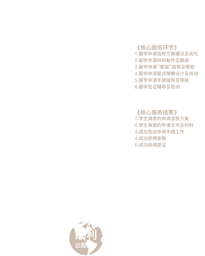 行臻留学服务团队通过⾃身掌握的服务经验、研究数据、申请案例等资源,在申请过程中为学⽣提供⾄少包含下述四项核⼼技术环节的全套技术服务及培训,全⾯评估并提升各个申请环节中学⽣⾃身及其申请材料的技术⽔准, 从⽽为学⽣争取最优化申请结果。四项核⼼技术环节如下: